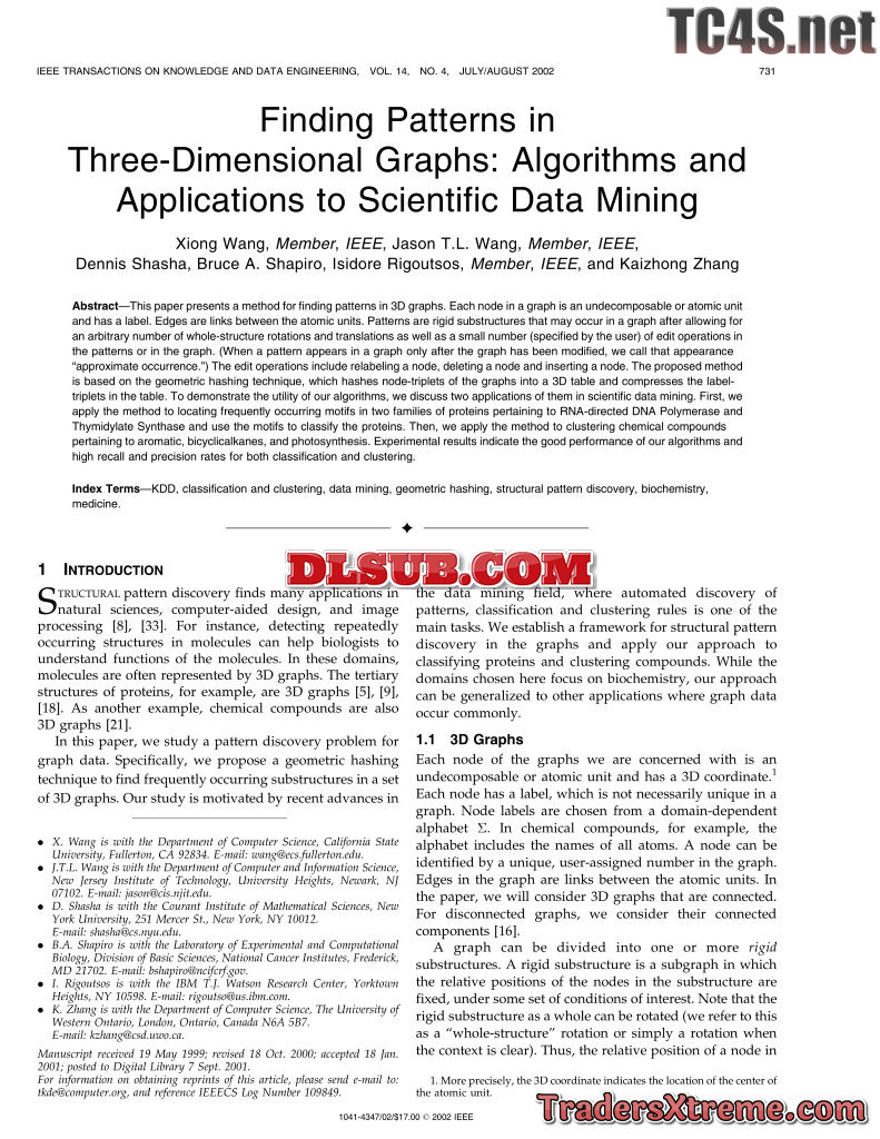 Ieee Finding Patterns In Three Dimensional Graphs Algorithms And Applications To Scientific Data Mining
