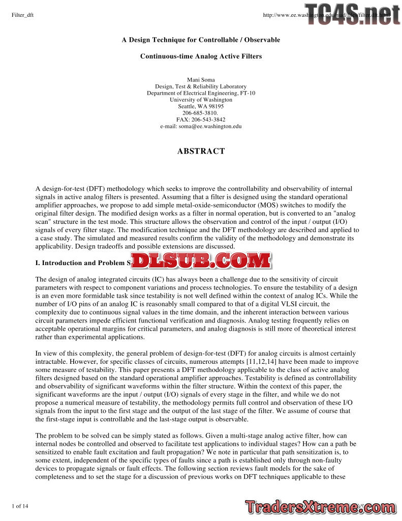 Mani Soma A Design Technique For Analog Active Filters