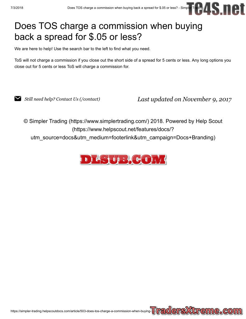 Does Tos Charge A Commission When Buying Back A Spread For Usd 05 Or Less Simpler Trading - JPG Image File