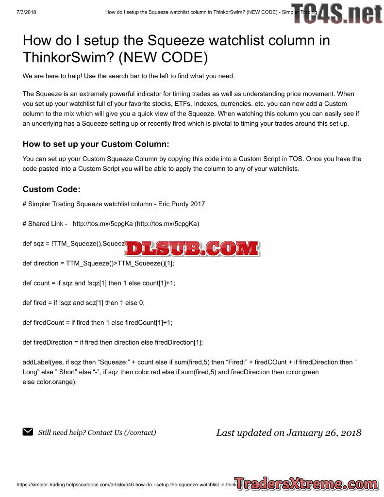 How Do I Setup The Squeeze Watchlist Column In Thinkorswim New Code Simpler Trading - JPG Image File