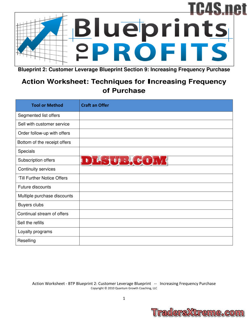 Clb 09 Techniques For Increasing Frequency Of Purchase Action Worksheet - JPG Image File