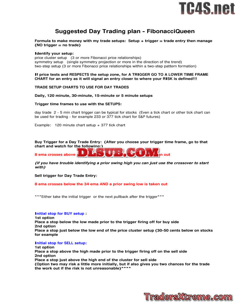Fibonacci Queen Basic Day Trading Plan - JPG Image File